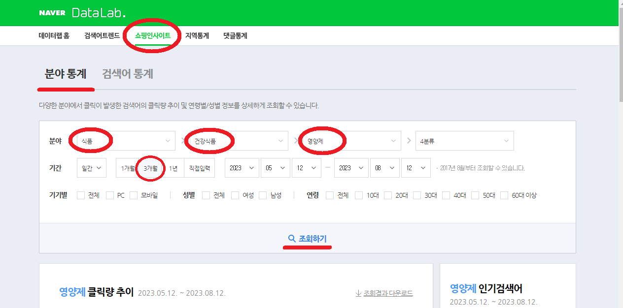 -트렌드 키워드(네이버쇼핑 검색통계: 일간 트랜드 키워드, 주간 트랜드 키워드 확인)