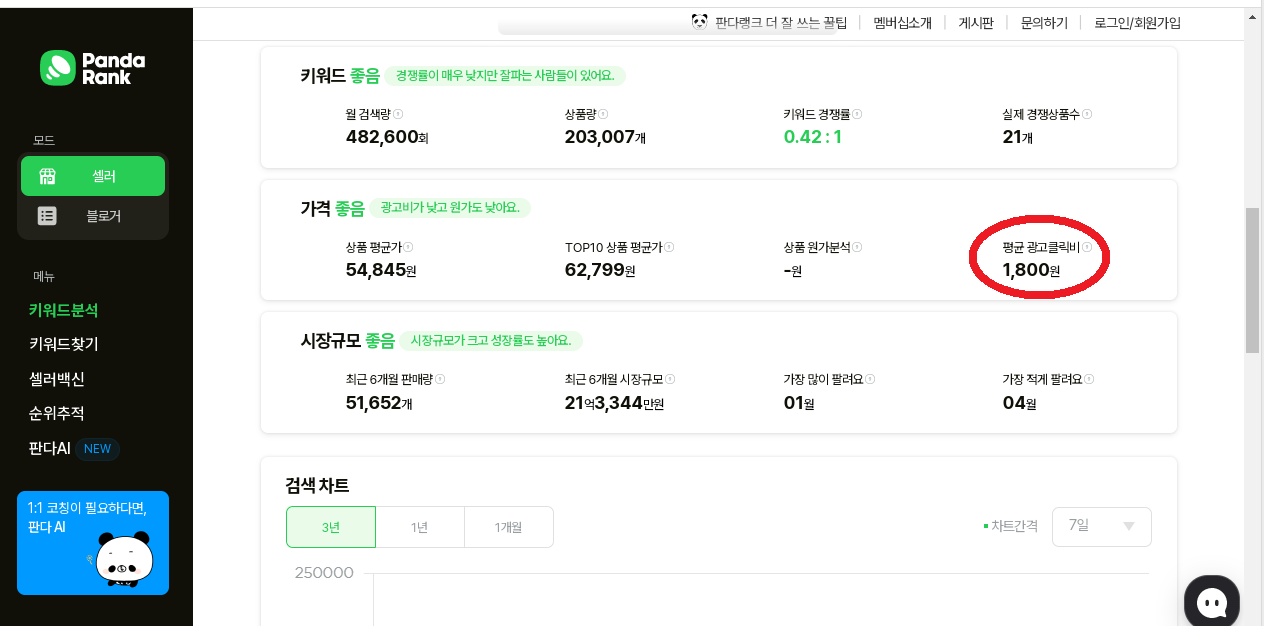 클릭당 단가: 평균광고클릭비 확인하여 네이버 CPC광고에 평균단가보다 조금 높여서 올림