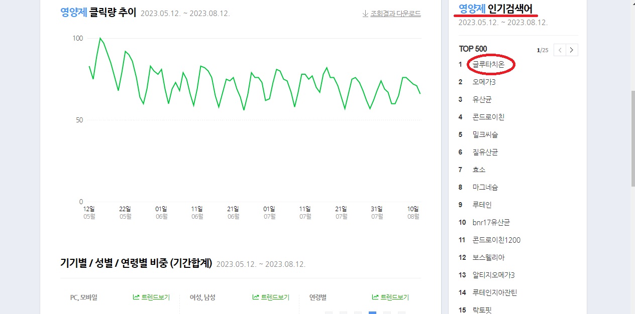 -쇼핑인사이트-분야통계-분야, (1분류, 2분류, 3분류, 4분류)선택-TOP 500 리스트 선택하여 네이버 검색